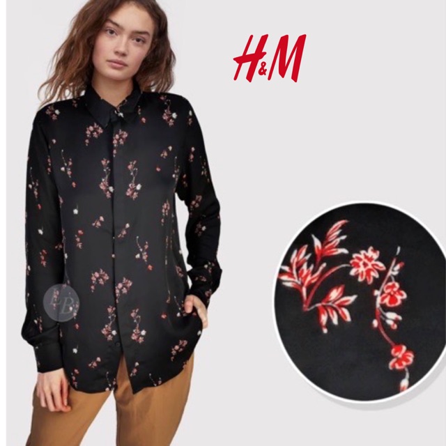 Baju atasan kemeja lengan panjang motif bunga kerja kantor sumber :